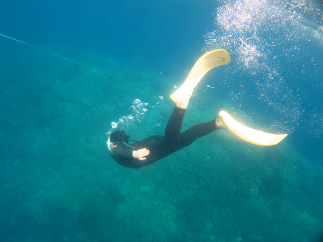 耳が多少抜けにくかったようですが、じっくり慣らしていくと慶良間の海を楽しめたようです。