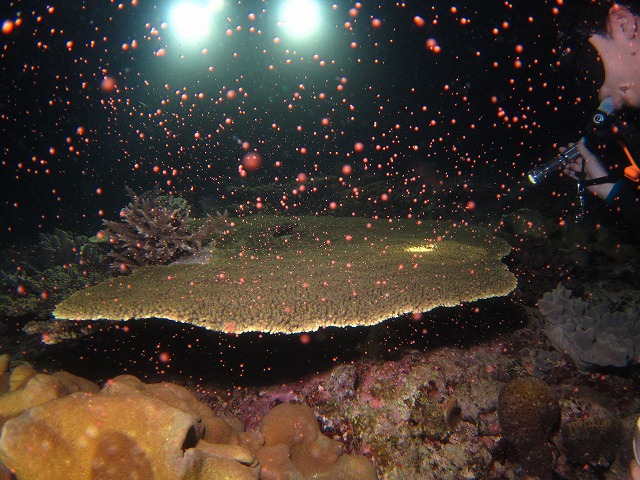 ここ数日、沖縄ではサンゴが産卵を始めています。