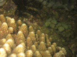 目当てのサンゴはまだしばらく産みそうになかったので、ソフトコーラルやほかのミドリイシを観察しながら待つこと30分・・