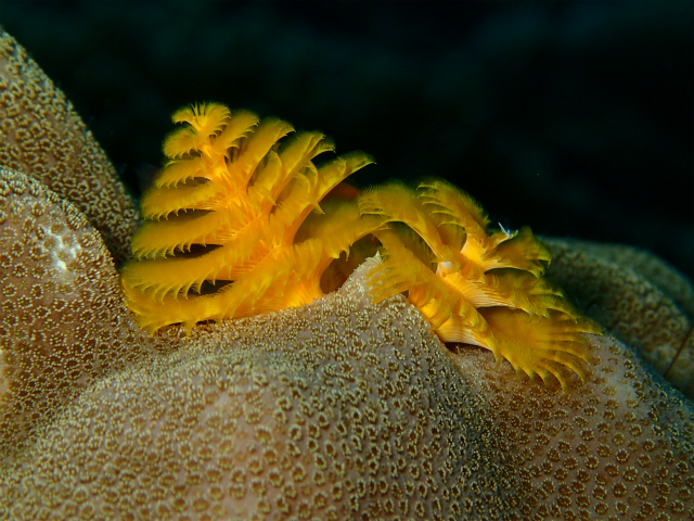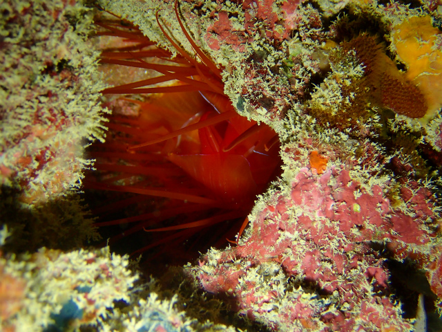 その日の気分で紹介しましょうね岩穴の奥に隠れている貝で、ライトで照らすと、赤く長い触手が特徴的です。
