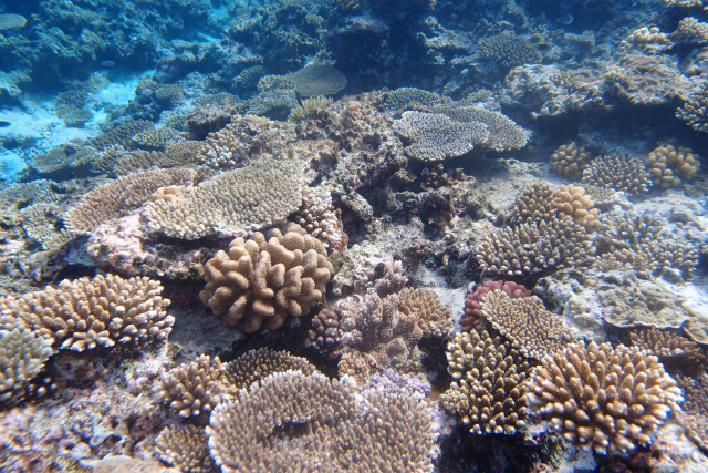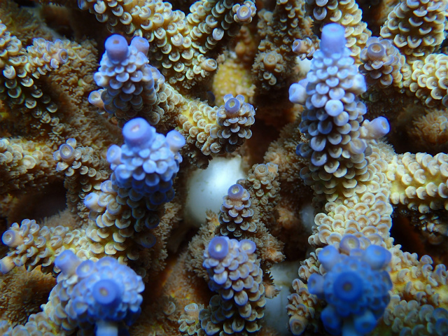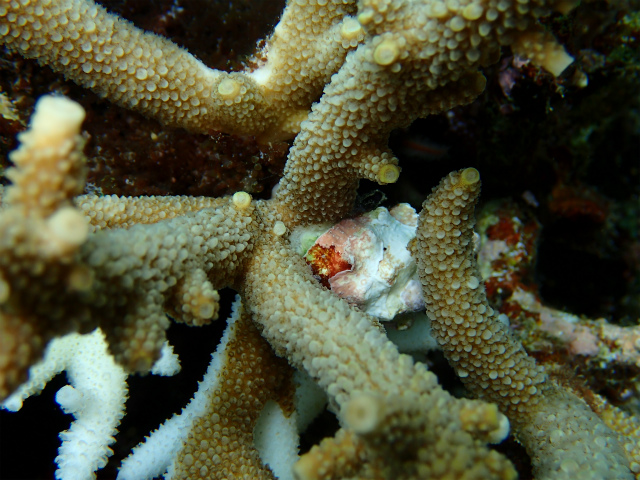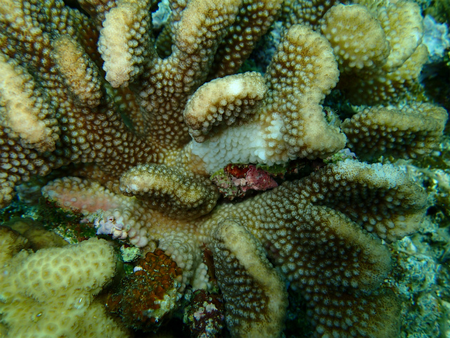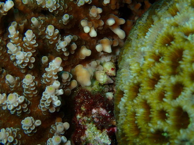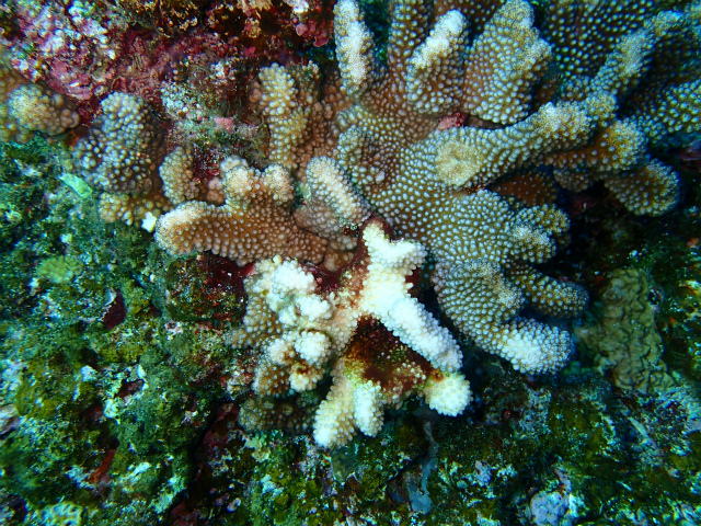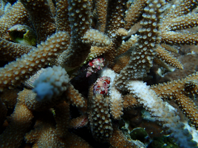 食痕はありましたが、オニヒトデのような大食いではなく、サンゴの隙間や裏側が部分的に白くなっていたものが多いので、レイシガイの様な気がします。