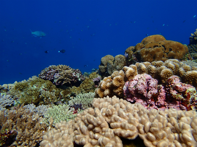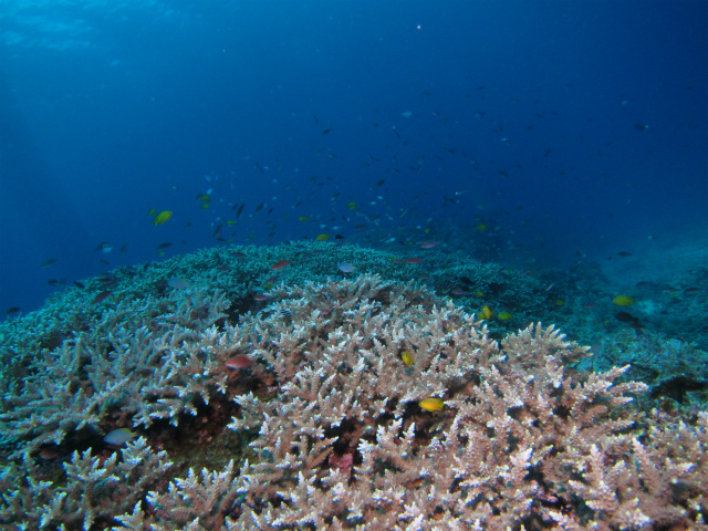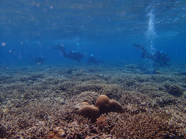 お正月の寒さはどこへやら。浅瀬にサンゴが多いポイントですが、今年の保全活動の成果があってか、レイシガイ・オニヒトデの姿は少なかったですね。