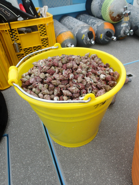 オニヒトデは、駆除のかいあってかあまり見かけませんでしたが、レイシガイダマシは僕1人でも3ダイブで124個・・・