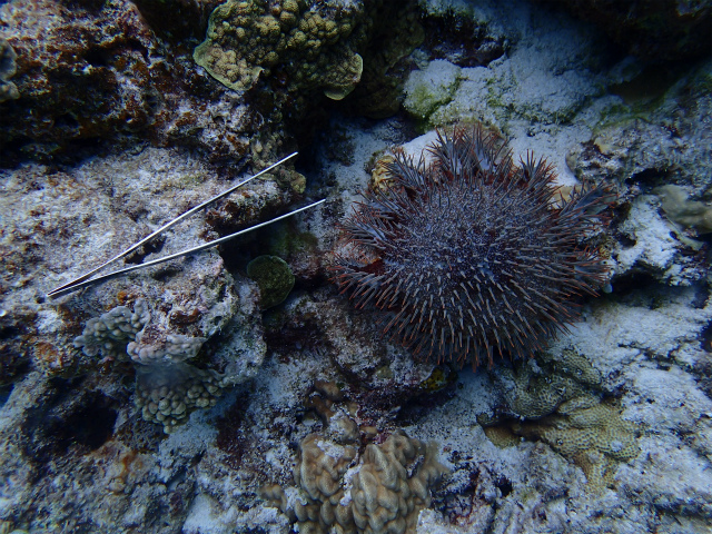 今日のポイントは、サンゴを食べてしまう、シロレイシガイダマシはもちろん、過去の駆除活動ではあまりいなかった、オニヒトデも数個体確認されました。