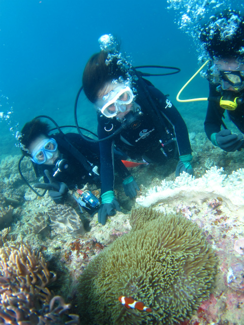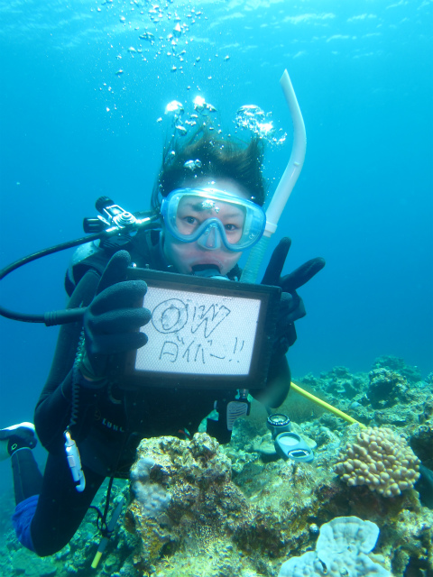 体験チームもはじめの緊張感を乗り越えて?無事にダイビングを堪能していただきました♪そして、OW認定♪