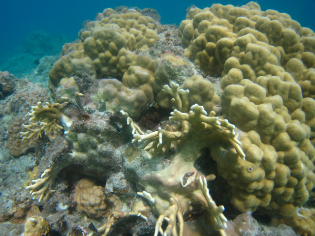 浅瀬のハードコーラルが綺麗なポイントですが、よーく見るとサンゴを食べてしまうレイシガイダマシが住み着いています・・・大多数のプロが同じポイントを駆除したので、かなりの数が。